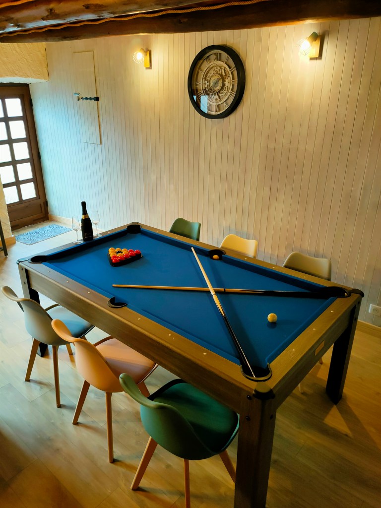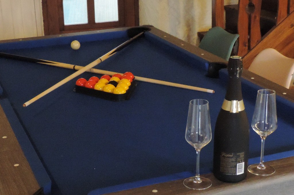 Au RDC se trouve la cuisine aménagée, une table convertible en billard, le sanitaire ainsi qu’un petit coin terrasse de 8 m2.