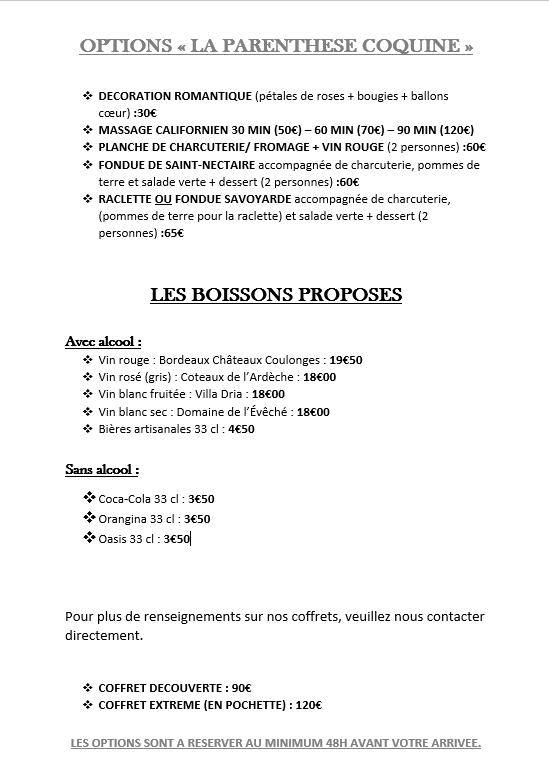 Notre logement de 70 m2 « La parenthèse coquine » est situé à Saurier (63). Ce dernier est entièrement conçu pour que vous puissiez profiter au maximum de vos petits moments détente et bien être en amoureux.